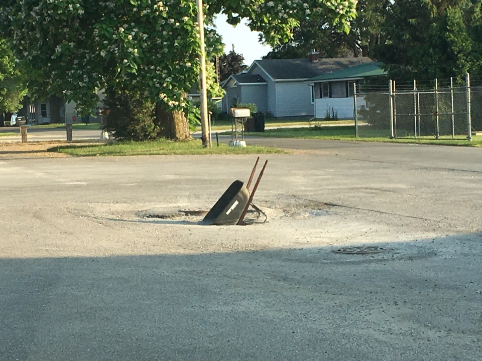 image ← Previous Next → This hole wa in the parking lot of a Mexican restaurant. I guess they figured this was the best way to make sure no one drove iinto the hole.